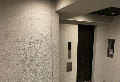 新築マンションのエントランス壁面を、ジョリパット(スフィンクス)パターンで仕上げました。